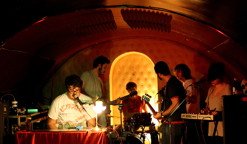 Al estudio de grabación viene un antiguo Person para grabar guitarras, a la comuna en la que se ha convertido la casa. Fuet, picos y ping-pong para pasar el rato, la piscina esta vacía, por la tarde las ratas trepan por las palmeras, el space-echo suena como un antiguo radiocasette de los ochenta, los que llevaban los negros del barrio en las películas, un Ghetto Blaster.