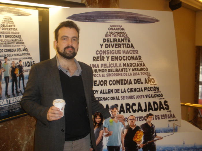 Los ojos de Vigalondo dejan entrever cierta muestra de síntomas de cansancio tras las jornadas de promoción, en las que concede entrevistas a multitud de medios, pero se le nota con aguante, ironía y buen ánimo.