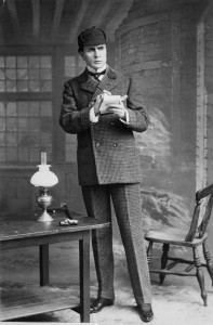 Gorro de cazador, gabardina a cuadros, lupa y pipa curva de brezo. Pocos personajes son tan universalmente identificables por su atuendo como Sherlock Holmes. Unos rasgos que hoy en día tenemos tan asumidos que no podríamos concebir al victoriano detective londinense ataviado con otros elementos. Sin embargo, nada de eso estaba en el Sherlock Holmes original, el de Arthur Conan Doyle. El padre de Holmes creó a su personaje basándose en algunas personas reales y, en concreto, para la descripción física parece que pudo tener muy en cuenta a un antiguo amigo de la facultad llamado Sherrinford, que llegó a formar parte de Scotland Yard ‒de hecho, la idea inicial de Doyle era llamar al personaje Sherrinford Holmes‒. Sin embargo, todos los símbolos que inmortalizarán al personaje se los debemos a Sidney Paget y a William Gillette, ilustrador y actor respectivamente.