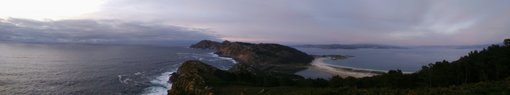 Panorámica de las Islas Cies, con la Isla Norte en el centro, lugar donde se rodo alguna de las escenas de los documentales de Jorge Candán. Fotografía: Iván Cernadas