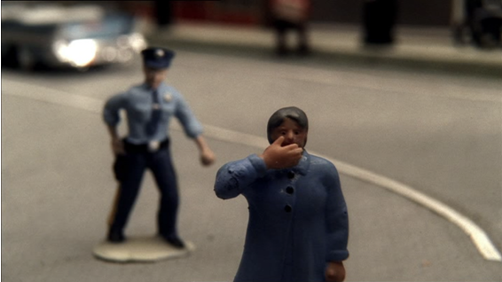 Baccala se relame, bacalao en los labios de un bilbaíno, mientras contempla su juguete azul. Como el verano. Y los extraños llegan y arrasan con todo. Imagen de nuevo de la señora tapándose la boca (por un momento podemos pensar que son esas figuras las que gritan, aterrorizadas, en la tienda; justo en ese preciso momento en que es disparado el gigante feliz, vemos a un policía de juguete tras la mujer sorprendida, escena que considero más escalofriante que la simple y llana matanza), el tren de la vida descarrilado a base de pequeñas y mortíferas balas. La pérdida de un hombre y de su reino de plástico, en donde el emperador Roberto I cae desplomado con los brazos abiertos sobre la pista de raíles. Así, antes de él, cayeron muchos otros que también gobernaron un país en donde todo fue una ilusión. En donde se creyeron dioses hijos de Marte y levantaron templos a su nombre y cortaron las cabezas de Júpiter para poner la suya propia. Y con su asesinato se derrumbó el palacio de mentira que ellos alimentaban con muchas y variadas especias exóticas y vasijas traídas de Grecia. Así, Bobby, cubierto de sangre, se despide de su propio reino animado, dejando también lugar al adiós al único personaje bonachón, el verdadero Papá Noel de la serie (“I can’t do it…I am shy”), el único que se escondía en su garaje para manejar los controles remotos de esa herencia made in China y pintada en brillantes colores.
