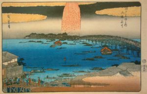 Fuegos artificiales en el puente de Ryōgoku. Hiroshige, de la serie “Vistas famosas de Edo”