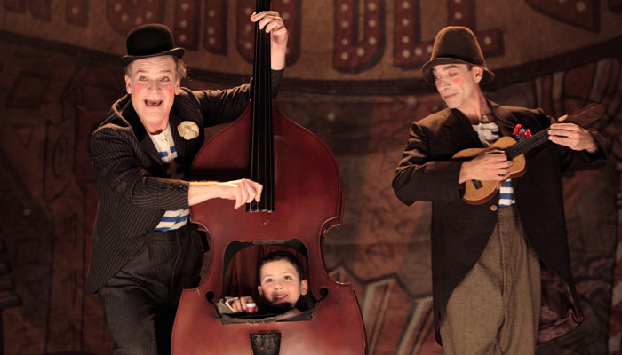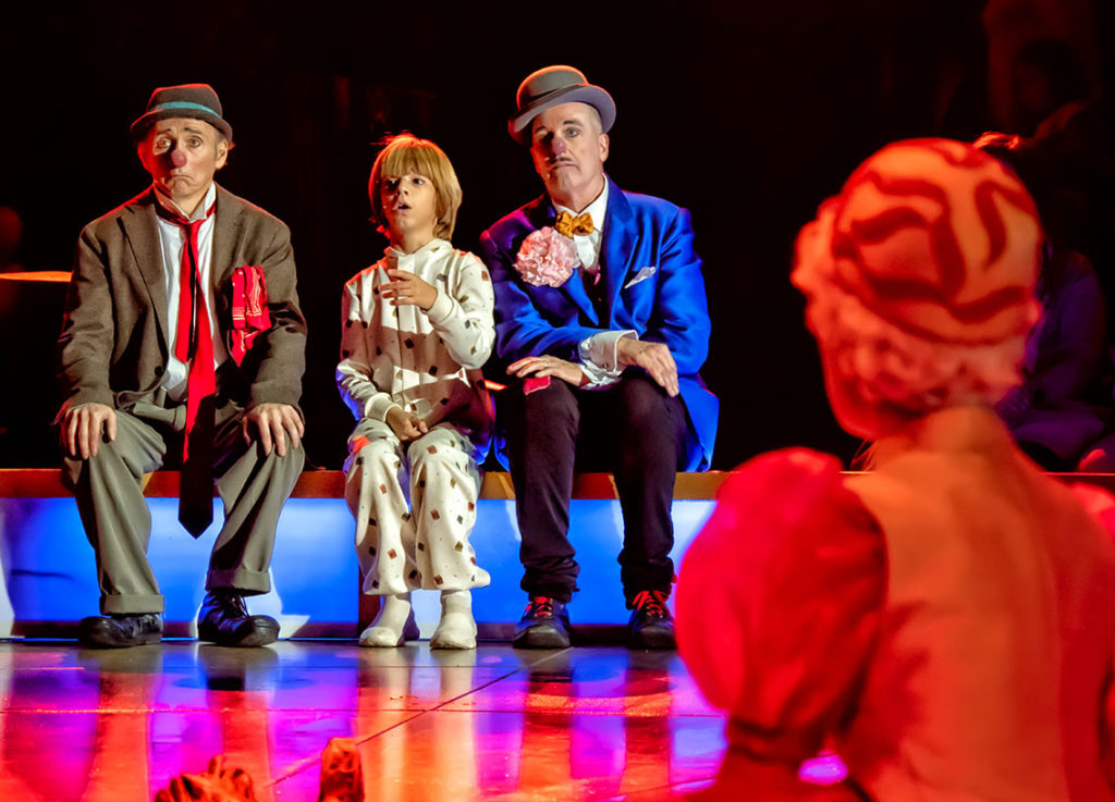 El niño Miliki con Pepito y Don José (Tom y Pepe). Los niños no pueden estar en todas las funciones, de manera que alternan tres: Bruno Del Val, David Hernández y Aarón Ullate.