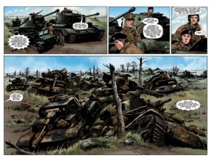 Ahora bien, como no podría ser de otro modo, Ennis necesita adaptar la realidad para que pueda tener el ritmo y la estructura propia de una obra del noveno arte. Por esta razón, la obra no resulta estrictamente fiel a lo que sucedió en la Segunda Gran Guerra. En este sentido, Ennis toma la idea de los “Funnies” para hacer de estos tanques unas herramientas bélicas de gran interés narrativo. Ahora bien, juega con el lector para sorprenderlo.