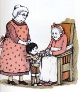 Tomie de Paola (texto e ilustraciones de 1973) y Isabel Cano (traducción del inglés). Abuela de arriba y abuela de abajo. Pontevedra: Kalandraka (Libros para soñar), 2022. 32 pp. A partir de los 7 años.