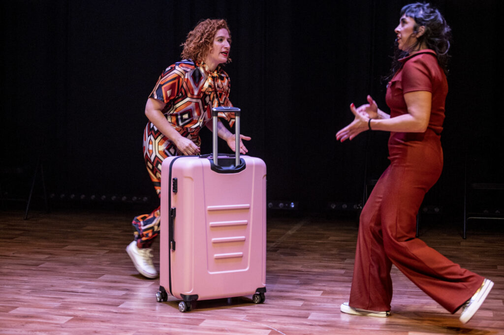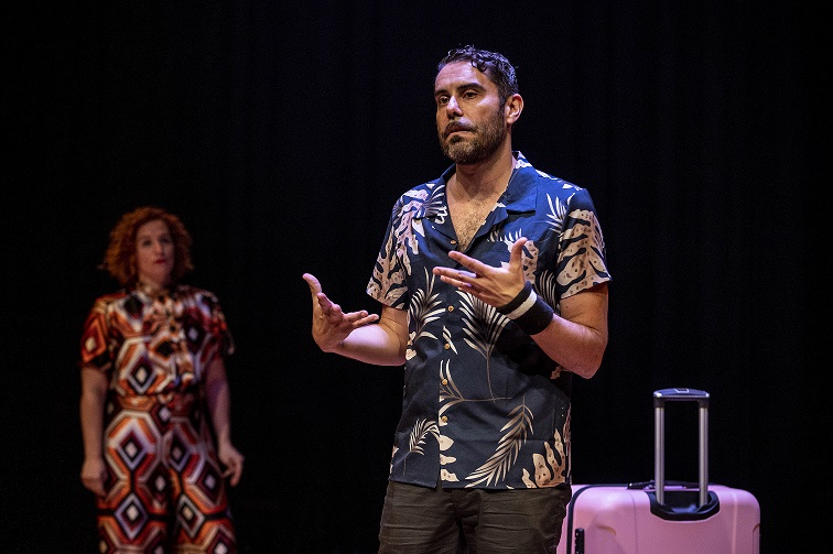 José Padilla, autor- director, da indicaciones al elenco. En la foto, le atiende Silvia de Pé.