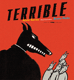 El lobo de Terrible, el nuevo álbum ilustrado de Alain Serres y Bruno Heitz, es un animal fiero, negro y grande. La editorial Libros del Zorro Rojo presenta este original cuento en gran formato que intenta mostrar el miedo de los adultos a resultar ridículos y a expresar nuestros sentimientos. Alain Serres es autor de álbumes como Yo seré los ojos de la tierra (Edelvives, 2008) o Una cocina toda de chocolate (Koninos, 2009).