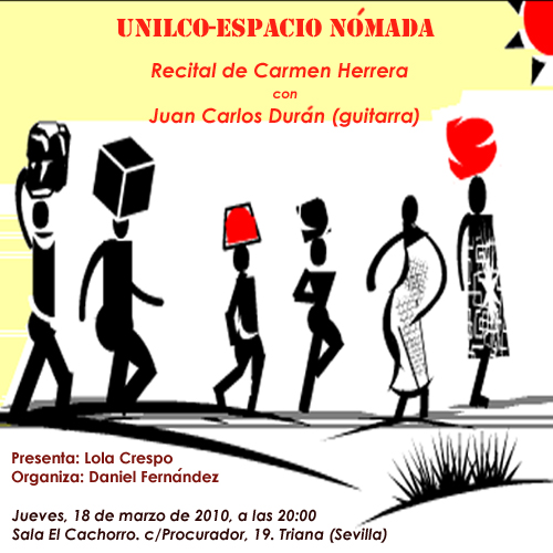 [Sevilla] Jueves 18 marzo. Recital de Carmen Herrera Mar 16, 2010 | Agenda Culturamas, Convocatorias, Poesía Jueves 18 de marzo 20 h. Carmen Herrera Con la guitarra de Juan Carlos Durán Sala El Cachorro c/ Procurador, 19 Triana – Sevilla Comparte esto: Haz clic para compartir en X (Se abre en una ventana nueva) X Haz clic para compartir en Facebook (Se abre en una ventana nueva) Facebook Haz clic para compartir en LinkedIn (Se abre en una ventana nueva) LinkedIn Haz clic para compartir en WhatsApp (Se abre en una ventana nueva) WhatsApp Haz clic para imprimir (Se abre en una ventana nueva) Imprimir Relacionado