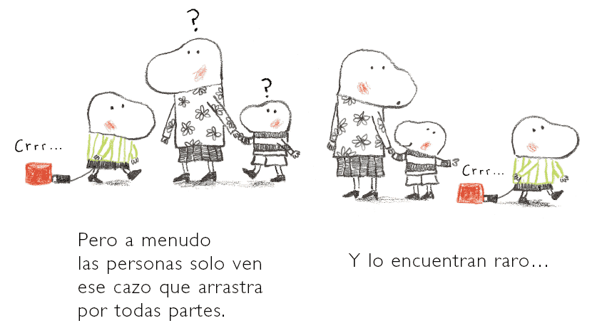 Para el pequeño lector, este libro habla de una situación absurda que condiciona al niño protagonista pero es capaz de superarla gracias a la ayuda de otros. Para el lector adulto, el mediador, esta es una historia sobre la discapacidad contada en clave de humor. Sin que los dos hagan las mismas inferencias del texto, el resultado de la lectura es el mismo: conmueve al lector.