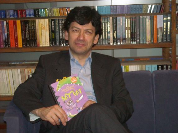 Tranquilo y comunicativo, Roberto Pavanello llega a España para presentar las últimas entregas de Bat Pat, editada por Montena, un fenómeno editorial para lectores de 7 a 11 años con más de 350.000 ejemplares vendidos. Asombrado por el éxito de su personaje, un murciélago detective, escritor y miedosillo, el autor italiano nos habla del personaje Bat Pat, de la familia Silver… Profesor de italiano en un instituto de Secundaria nos muestra su  interés por el fomento de la lectura infantil y el apoyo una animación a la lectura que comience en el entorno familiar basada en la lectura en voz alta. Un autor para el que la literatura infantil es un placer.