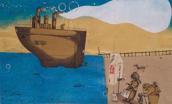 Todas las páginas son de tacto y fondo similar: el ilustrador, el iraní Hassan Amekan, ha querido transmitir la sensación de precariedad de los personajes por medio de collage y dibujos sobre papel similar al cartón, ya que sus viviendas son de cartón, sus vidas son de cartón; por medio de esta metáfora visual trata de hacer llegar a los primeros lectores la sensación de precariedad de los inmigrantes ilegales que llegan al mundo rico desde allende el mar.