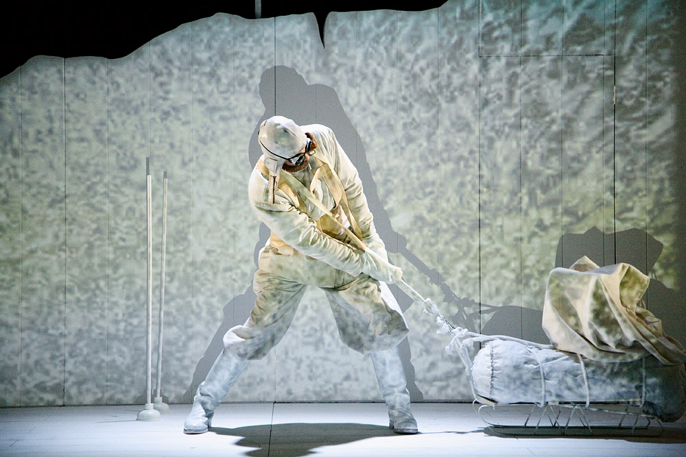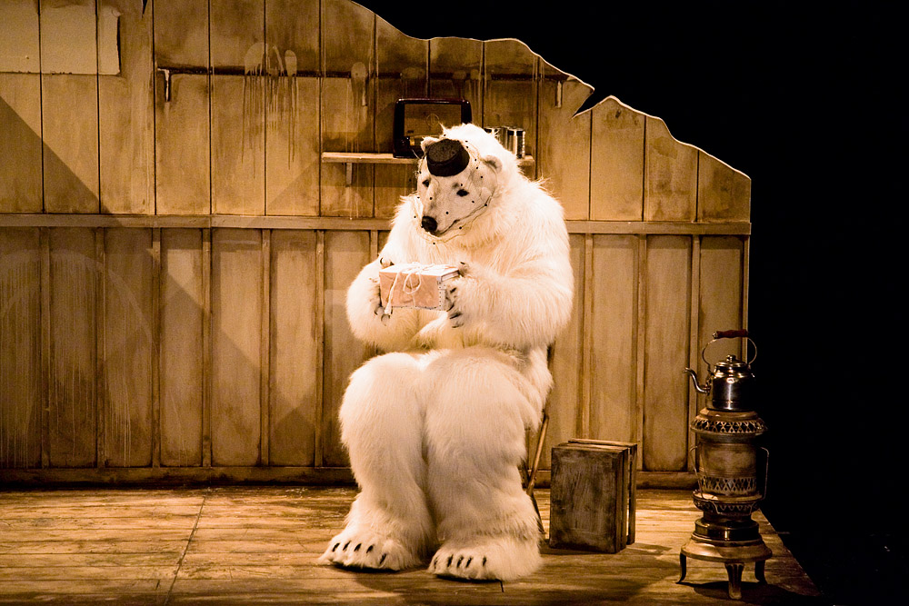 Dos hombres, el noruego Roald Engelbregt Amundsen y el inglés Robert Falcon Scott, compiten por ser el primero en llegar al polo sur y uno, de entrada, ya debería preguntarse : y ¿qué más dará ser el primero o el tercero en alcanzar la meta si la dicha es buena?… Sin duda, por contexto deportista, no es ésta la mejor reflexión que se pueda hacer en esta racha bermellón que llevamos, pero es el tema central de esta obra apta para cualquier público en cualquier época del año. De hecho, ser el primero, a comienzos del siglo XX, era aún sinónimo de conquistar un espacio no siempre virgen : la Antártida en este caso desquiciado, ya que estamos hablando de un glaciar poblado de pingüinos. Y aunque para el uterino Fernando Savater, cualquier viaje comienza o se limita al interior, se diría que Fernando Sánchez Cabezudo se adhiere más bien a la opinión de un Jorge Luis Borges según el cual cualquier recorrido es espacial. Y en la misma línea que otros espectáculos anteriores de Mr. Kubic, articula su narración a partir de un espacio concreto ingeniosamente estructurado, esta vez, en plataforma giratoria de madera dividida en dos zonas que representan ora una tierra helada, ora el interior de un hogar. Y así, mezclando la tosca realidad (esa materia tridimensional) con los efectos especiales del sueño (luces de un foco, imágenes proyectadas, música), se suceden, como en un viaje en el tiempo, los diversos episodios de ambas expediciones, alternando escenas de puro verismo con instantes meramente líricos. Los dos actores, Fernando Sánchez Cabezudo y Hernán Gené, se complementan con una armonía deliciosa y gracia a porrones aunque, sin duda, hay que destacar la versatilidad y, por momentos, la belleza del personaje de la osa polar… Este símil estelar me hizo pensar más tarde en lo ingenuo que llega a ser un hombre ávido de ficciones y sobre todo en lo frágil que le vuelve su imaginación. Según Savater, si los grandes exploradores añoran todos “la magia” de su niñez, en sus vidas personales son auténticos desgraciados, a menudo víctimas del hermano primogénito convertido en eterna “vedette de la casa”. Puede ser. En esta obra, nos cuentan dos puntos de vista del explorador. El del terco Scott que sacrificó hasta su propia vida con tal de no ceder ante los imperativos abruptos de la realidad antártica que él ignoró, lo que le llevó, entre otras cosas, a no utilizar perros con trineos sino garbosos caballos mongoles y a empecinarse, hasta su último aliento, en recoger “muestras geológicas” que, más adelante, llegaron a ser unas aportaciones cruciales para comprender la prehistoria de la tierra. O el de un pragmático noruego Amundsen, impelido por su pulsión de conquista que le arrastró sin éxito hasta el polo norte, lo cual le llevó a conformarse después con ser el primero en pisar el suelo más sureño del mundo gracias, entre otras cosas, a su interés por la sabiduría ancestral de los nativos de tales zonas frías o a sus siniestros cálculos de supervivencia. Si Scott perdió su vida y la de sus hombres en el intento, Amundsen pudo contar su hazaña gracias al canibalismo que impuso a su cuadrilla de perros en el viaje de regreso. El uno fue demasiado inteligente, el otro demasiado listo. Para sus respectivos reinos fueron grandes héroes en su día, por el provecho que de su empeño sacaron. ¿Quién se acuerda de ellos hoy ? Es sin duda el mérito de este espectáculo que, al salir del patio de butacas, nos ofreció la posibilidad de contemplar periódicos de la época y testimonios todavía vivos. O eso nos pareció.