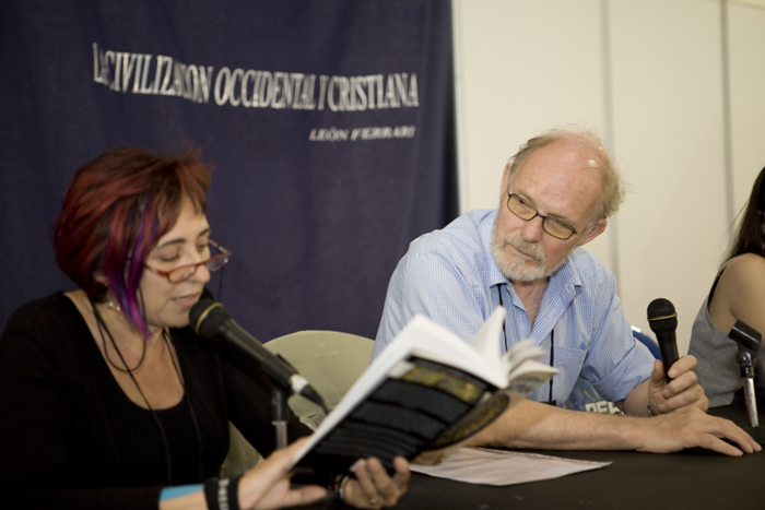 Se nota una admiración mutua entre Elena Clemente -traductora de la novela- y Steve, que aprovecha el momento para agradecer públicamente a Elena la genial traducción realizada. Él es consciente de que ha sido un duro trabajo, sobre todo, por la cantidad de frases hechas que ha introducido en su obra y que han sido perfectamente captadas por Elena, que sonríe tras el micro.