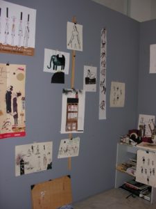 Un montaje espontáneo y luminoso en el que el ilustrador muestra todo su proceso de trabajo: sus pinceles, sus tinteros, técnicas de grabado, sus bocetos, sus pruebas falsas, -que son muchas según comentó el artista lo que permite conocer todo el proceso y los diferentes momentos de creación del libro-, sus diferentes formas de trabajar… En una esquina de la exposición ha intentado reproducir su pequeño rincón de trabajo dando a la sala un aire acogedor y fresco. Como señaló el ilustrador se pueden ver “un poco de todo” desde carteles de exposiciones como Titirimundi, libros infantiles, álbumes ilustrados… Bocetos de la obra de Hamlet, Barcelona para niños, Santiago, El hombre que compró la ciudad de  Estocolmo, La dama del perrito o Bartleby, el escribiente.