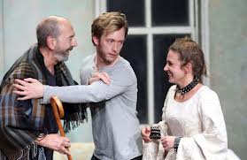 Todos estos asuntos que va uniendo la red de Veronese actúan a modo de coro griego, unos alzan su voz más que otros, pero en esta propuesta del Español, el director ha querido destacar el papel de los sueños. Sí, ésos que guardamos desde la adolescencia, los que pertenecen a la esfera de lo profesional o los que anhelan el amor. ¿En qué estado somos más felices: en el del pre-cumplimiento del sueño o en el post-descubrimiento de lo que acarrea un deseo que se realiza? “Cuidado con lo que deseas porque se puede cumplir», dice el proverbio anónimo. El amor puro y mantenido a base de ficciones sobre el futuro que existe entre Kostia y Nina se transforma en pesadilla una vez que él logra su deseo de ser dramaturgo y ella actriz. Nina, interpretada por una Marina Salas espléndida y que ha madurado como actriz a pasos agigantados desde su Luces de Bohemia del pasado año. Salas da vida a una Nina fresca, desprejuiciada, adolescente invadida de ilusiones de triunfo y de admiración por los “grandes artistas” con los que tiene ocasión de departir en la finca Sorin. En medio de un ambiente artrítico, polvoriento, oxidado, lleno de máscaras falsarias, las impetuosas entradas de Nina airean a los habitantes del salón y sus costumbres. La limpieza de su mente contrasta con la tormenta constante que surca la de Kostia, atenazado por su perfeccionismo, por la sombra de su madre, por el miedo al fracaso. El dúo Salas-Rivero ejerce de epicentro de un drama que tuvo su origen en el mismo vientre de Irina.