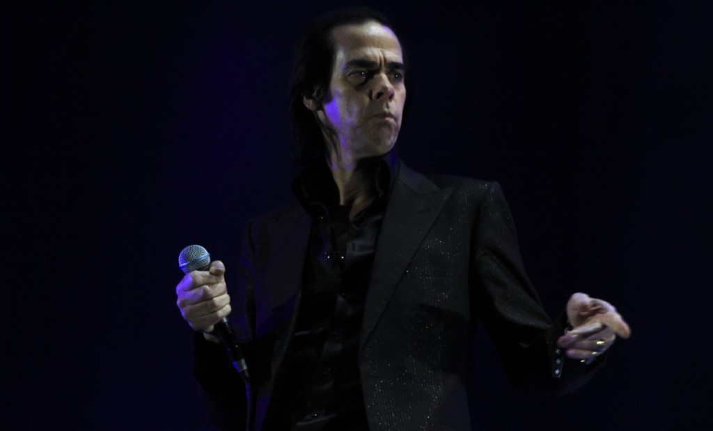 Estaba marcado con rotulador rojo en el esquema mental de las actuaciones del festival y sus horarios correspondientes. Ocupaba un lugar preferencial en las intenciones de miles de asistentes. La cita cercana a la medianoche del que, si no fuera un término tan denostado por el aluvión de productos que giran alrededor de esta figura mitológica, podríamos considerar uno de los últimos vampiros del rock, Nick Cave. Con su porte y andar ligero, vestido de reluciente negro de pantalón, camisa y americana (que dejaría al terminar de despertar la bestia), el pelo aún más oscuro y fino como el momento en el que cíclicamente se pasaba de la calma a la tormenta. Pero es más que esto, Cave es un reverendo que tiene línea directa con el de arriba y su contrapartida sulfurosa, o es el mismo por duplicado, o sencillamente, un tipo que sabe más, por viejo (que lo empieza a ser aunque su actitud lo desmienta) y por diablo. Un crooner de bajos fondos, altos hornos y bellos parajes, excesivo para lo bueno y lo malo, altamente disfrutable en el personaje, que ya uno no sabe si se ha comido a la persona.