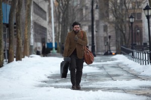 Viendo a Llewyn estamos ante un ser egoísta y egocéntrico, con raptos de ira acumulada, dispuesto a aprovecharse de la más mínima oportunidad para sablear a quien se deje, mudando de cama noche tras noche y sin hogar, con la única compañía de una guitarra que ayuda a crear una imagen de ser desvalido, arqueado, abrumado por el peso de la existencia. Por no tener, en el frio invierno neoyorkino, no tiene ni abrigo, y deambulará y paseará en busca de ese productor fantasma todopoderoso que le lance al mercado azotado por la intemperie.