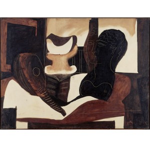 Unos contenidos a veces empañados o profundamente influidos por su situación personal o/y un contexto histórico convulso. Si bien es cierto que no encontraremos en esta selección plañideras o felinos devorando aves, la oscuridad de la guerra está presente en otros elementos que incorpora a sus naturalezas muertas, como el cráneo (animal o humano) o la vela (‘Cráneo de toro, frutas y jarrón’, 1939). Esta implicación emocional también queda plasmada en sus trazos y en la deconstrucción severa del cuerpo femenino en los retratos pertenecientes a este periodo bélico.