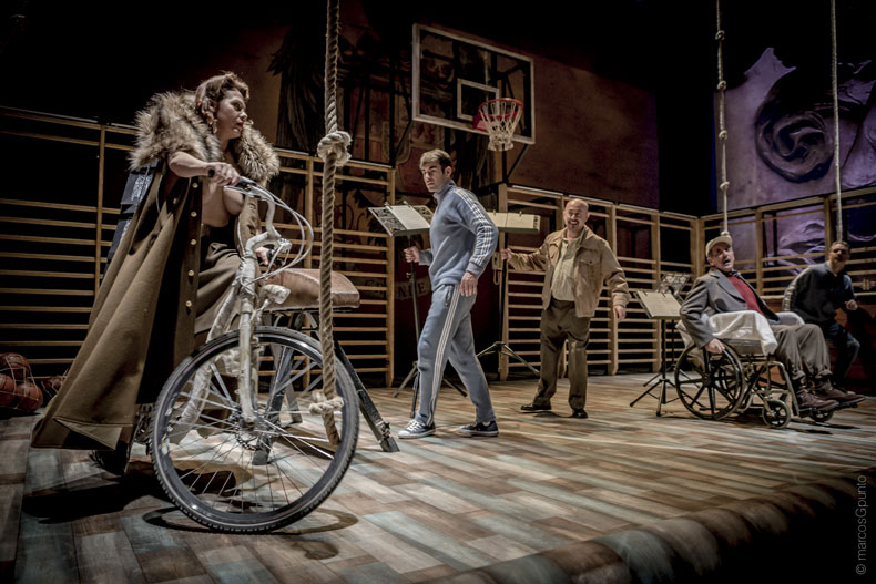 Es muy buena la escenografía del propio director, maravillosa la iluminación logrando singulares atmósferas, fascinantes las serigrafías en los laterales, ejemplar el encierro en el gimnasio… Una coproducción óptima entre el Centro Dramático Nacional y Pérez de la Fuente Producciones.
