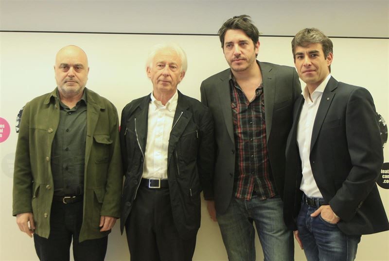 De izquierda a derecha: Juan José Afonso, director de la función; Albert Boadella, director de los Teatros del Canal; Ignasi Vidal, autor e intérprete; Daniel Muriel, intérprete.