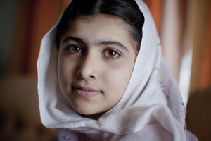 Malala nació en Mingora y acudía diariamente a clase en el colegio que dirigía su padre; los talibanes, grupo extremista religioso, quieren prohibir la presencia de las mujeres en los colegios; como Malala y sus amigas se negaron a aceptar esa orden, y defendió públicamente su derecho a estudiar, un día fue tiroteada en la cabeza cuando volvía a casa en la camioneta de transporte, por suerte vive para contarlo, reside en Birmingham y entre otros premios ha obtenido el Premio Nacional Juvenil por la Paz de Pakistán, el Premio Internacional Madre Teresa Memorial por la Justicia Social, el Premio Roma por la Paz y la Acción Humanitaria, el Premio Nobel de la Paz.