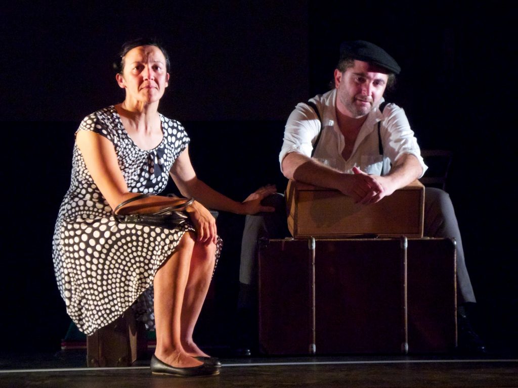 Y llegan los besos, las risas cerveceras: las ganas de vivir por encima de todo fracaso, de todo golpe bajo. Testimonio social y comedia dramática bien untada de memoria histórica. No se recuerdan matanzas en cunetas, pero es más que suficiente con la representación de quienes salieron de la España profunda a la inquietante Alemania de posguerra: una murciana y un gallego forman un matrimonio que lo deja todo para buscarse la vida. Ella con su infatigable capacidad de optimismo, él con una tozuda tristeza bien envuelta en humor negro, al fin los dos emocionados con su miedo a cuestas bajo lágrimas contenidas que alcanzan al público cuando, en su infinita pobreza, se preparan para subir a un autobús alemán después de tres días de viaje.