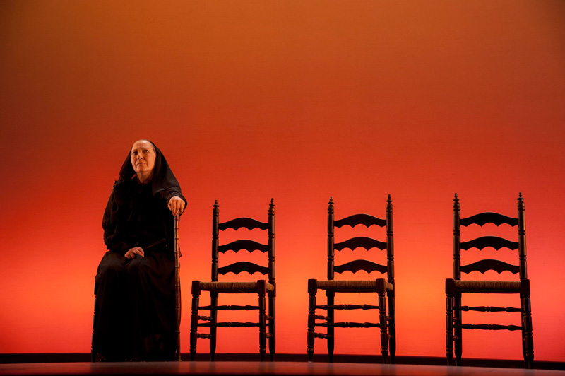 Una puesta en escena austera que se apoya exclusivamente en sus intérpretes, presenta un mundo de mujeres vestidas de negro con unas pocas sillas por toda compañía. El trágico desencuentro de seres condenados a la soledad y el tormento, como monjas de un convento secular, se sostiene por el intenso dramatismo de un texto que ya es un clásico del siglo XX. Esta compañía aporta una visión diferente ante la soledad de la propia madre terrible, también ella víctima de las circunstancias.