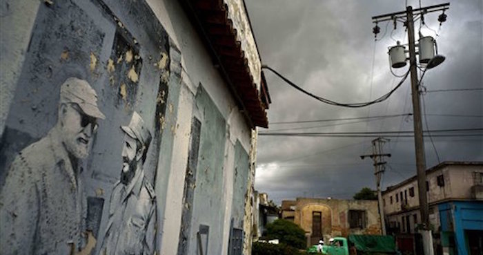 Un mural que retrata a Fidel Castro estrechando la mano del escritor estadounidense Ernest Hemingway. Foto: AP.