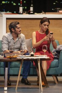 Del cine al teatro en un juego que fascina al mundo entero. Primero la película italiana de Paolo Genovese, después la versión cinematográfica de Alex de la Iglesia, más tarde la versión teatral que va de país en país configurando el clásico éxito que atrae a los que no se pierden una y a los que van al teatro de Pascuas a Ramos. En el Reina Victoria de Madrid se produce una excelente versión castellana con siete intérpretes estupendamente integrados en un ámbito donde la teatralidad consigue la empatía absoluta de un público que sabe de qué se habla cuando los amiguísimos apartan la juerga entre copas y se asoman a los secretos de unos y otras. Lo muy español en la tendencia de reírse de casi todo, apartando situaciones conflictivas con un «Pero, bueno…» que pasa página para engarzar con otra ocurrencia carcajeante… se plasma en esta puesta en escena de tal manera que los espectadores se sienten partícipes directos en la célebre cena.