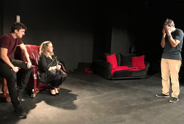 Con este arranque, la muy íntima sala del Teatro Intemperie se convierte en un salón convencional, con sillón orejero, sofá y mesita que no hay que manchar ni rayar en absoluto, pero en ese sitio sucederán muchas cosas con la pátina humorística de un negro humor teñido de teatro del absurdo entre padres e hijos con una dinámica novedosa, muy bien escrita y brillantemente interpretada por dos actores que se ocupan de ser dos padres y dos hijos, y una actriz que es una madre atribulada que enciende la mecha que puede empezar a liquidar el excesivo egocentrismo del hombre de letras, encantado de haberse conocido y de haber creado una novela capaz de fascinar a un profesor de literatura y conducirle a cometer una auténtica locura.