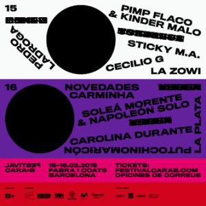 A poco menos de un mes de poder disfrutar del festival de cultura musical independiente y urbanaCara•B, ya conocemos todos los artistas que pasarán por los escenarios de la Fàbrica Fabra i Coats de Barcelona durante el fin de semana del 15 y 16 de febrero.