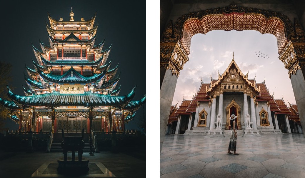 Hongen pavilion (izquierda) y Marble temple Bangkok (derecha). © Tristan Zhou