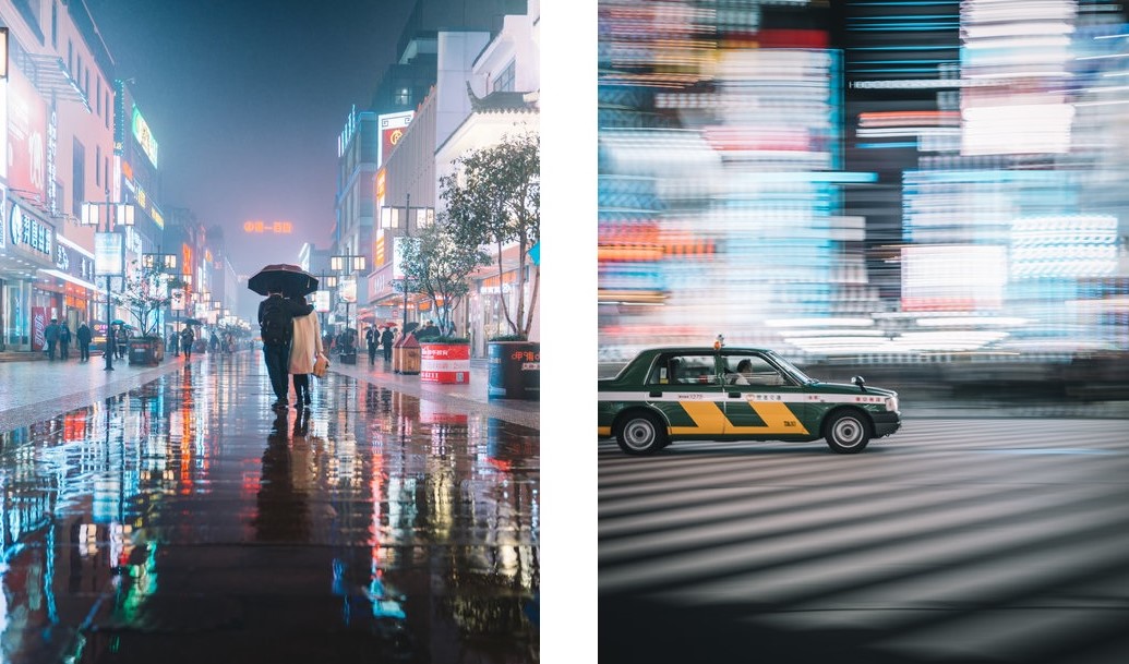 Guanqian street (izquierda) y Shinjuku taxi panning (derecha). © Tristan Zhou