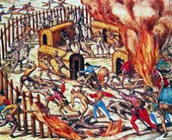 Ilustración donde queda constatado el horror y destrucción vividas por el pueblo indígena