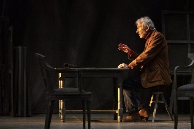 La escenografía está resuelta en tonalidades grises, estudio de un pintor que en lugar de crear obras «con ayuda de los ángeles», pasea su soledad, copa en mano, recordándola una y otra vez, inventándose un público que no tiene pero que el teatro ofrece generosamente. De allí que cada movimiento del gran actor avanza sobre seguro con una iluminación que compone, a su modo, una obra pictórica con la que trascender las carencias de un relato bastante monocorde, en el que, igual que en el texto original, se echan en falta aspectos críticos de la persona idealizada, una especie de vida de santa que carece de conflicto alguno, ya que desde que abrimos el programa sabemos de qué va la historia.
