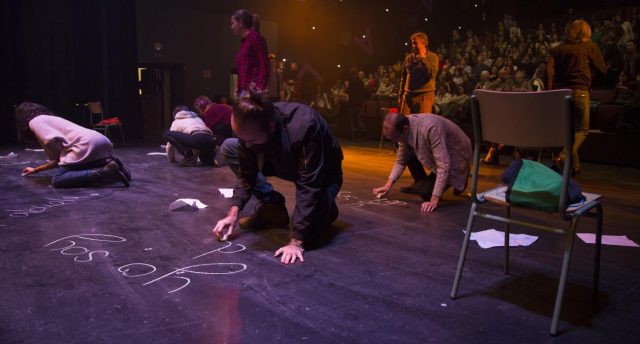 Al final de cada función, y antes de conversar con el público se entrega a los espectadores tizas para que escriban en el suelo del escenario su «Yo soy de…». Un abrazo fraternal que muchos aceptan con lágrimas en los ojos.