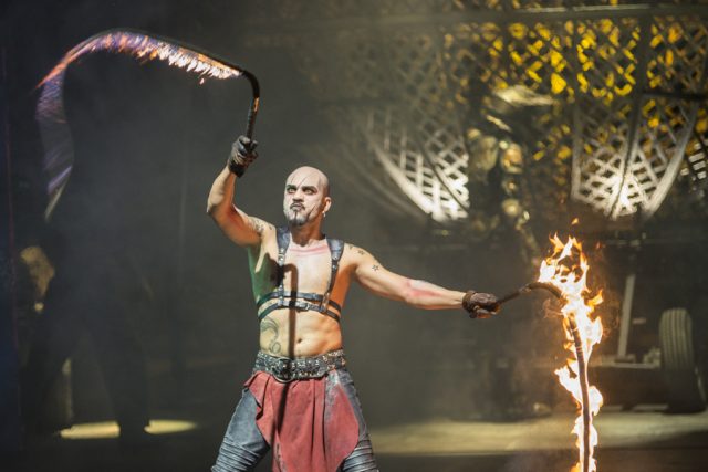 Una moto atraviesa por el aire el gran escenario, y en la enorme pantalla estalla el horror. Uno de los números más espectaculares en una función cargada de sorpresas impactantes. (Foto: Productora)