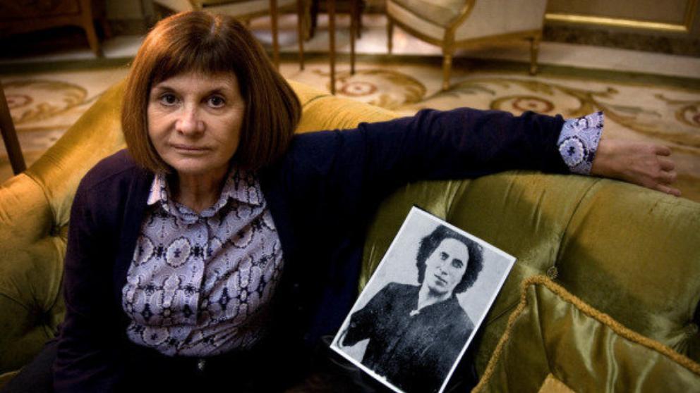 Alicia Giménez Bartlet con una foto de su personaje: La Pastora sobrevivió a una existencia de soledad absoluta.
