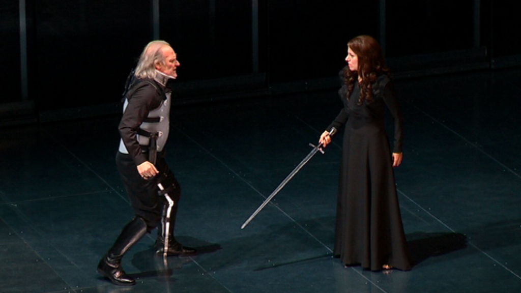 Macbeth, Lady Macbeth. Shakespeare. Versión y dirección Carles Alfaro. En la foto, Adriana Ozores, Francesc Orella, y elenco. 2008.