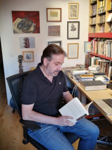 La faceta literaria de Jordi Doce tiene una obra interesantísima y original en poesía, traducción, aforismo y ensayo. Mantiene en activo su blog “Perros en la playa”. Preparada por el propio autor, y hermosamente impresa por la editorial asturiana Ars Poetica, En la rueda de las apariciones (Poemas 1990-2019), nos ofrece una compilación de miradas para conocer la obra poética de Doce a lo largo de dos décadas.