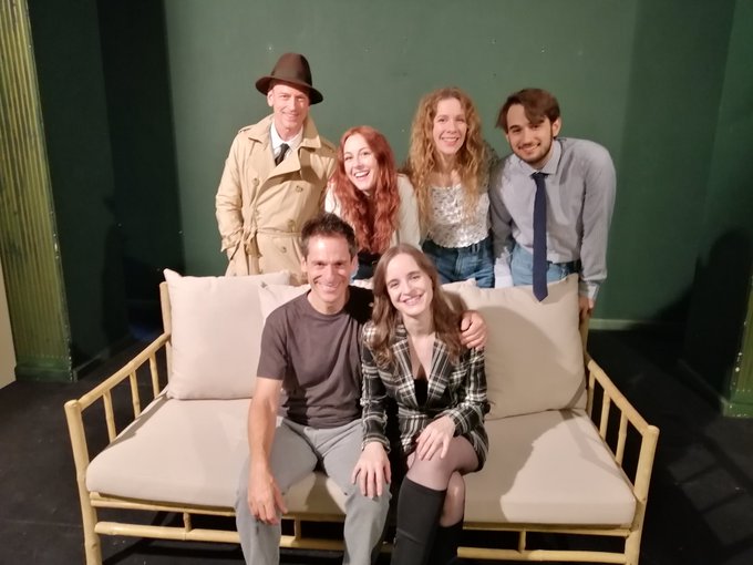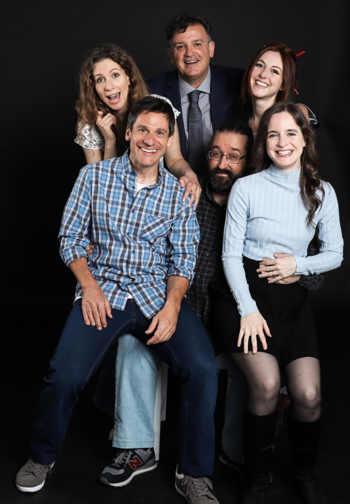 La actual Compañía PasoAzorín. De pie: Inés Kerzan, Carlos Seguí, Ángela Peirat. Sentados: César Camino, Ana Azorín. En el centro, sentado, tan divertido como los demás, Ramón Paso, autor de la versión y director.