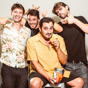 De izquierda a derecha: Fran Nortes, Nacho López, Bart Santana. Sentado, el director, Gabriel Olivares.