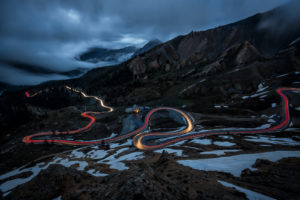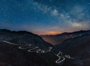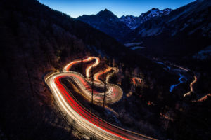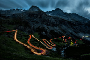 En Suiza y Europa tenemos algunas de las carreteras alpinas más hermosas del mundo. Un día pensé que debería probar a tomar una larga exposición de un camino de montaña, así que tomé una fotografía de la «Tremola San Gottardo» (Paso de San Gotardo) porque se trata de un camino con muchas curvas. El primer intento salió muy bien, y eso me motivó a hacer más fotografías de carreteras por la noche, sobre todo porque no había visto ninguna fotografía de ese tipo antes.