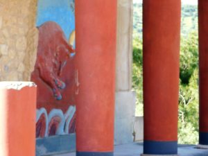 Yo fui a Cnosos a buscar la vitalidad y el dinamismo, el refinamiento y la pasión. Para mí fue la cultura más fascinante de la Tierra, sus frescos exquisitos e imaginativos, sus mujeres abrazando árboles, su Parisiense con los labios pintados , sus casas dispuestas de manera movida y llena de sorpresas, sus comodidades insólitas hace miles de años, su pacifismo apasionado, me atraían mucho más que las pirámides apabullantes, las puertas o las murallas militaristas, los dioses feroces de otras culturas. Me encantaba aquel moverse de casas de colores saltando con pinturas (las originales las vi en el Museo de Heraklion) sin palacios prepotentes ni murallas, hasta el trono de Minos parecía de juguete. Caminaba por esas calles nada cuadriculadas y recordaba a Borges.