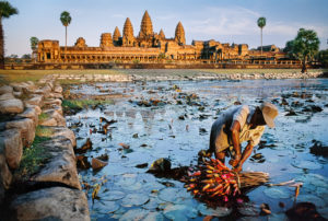 Local in the waters of Angkor Wat, Angkor, Cambodia, 1997