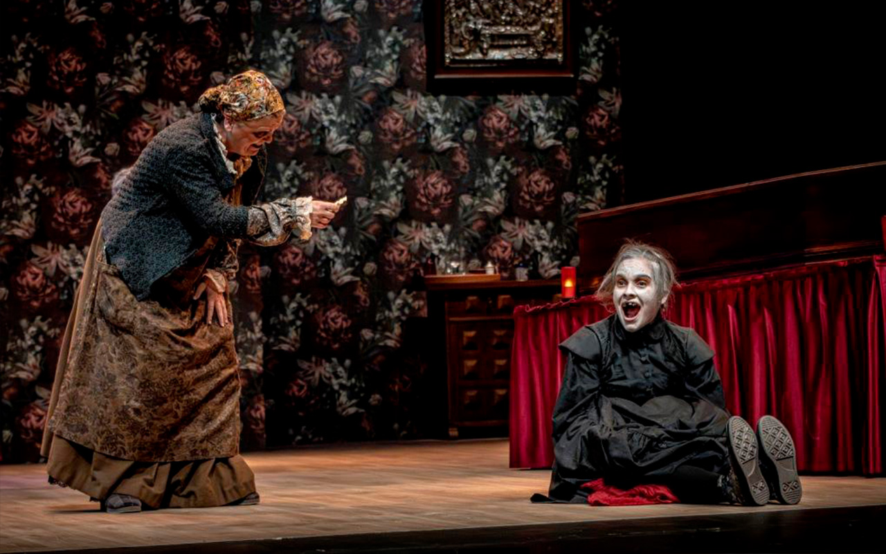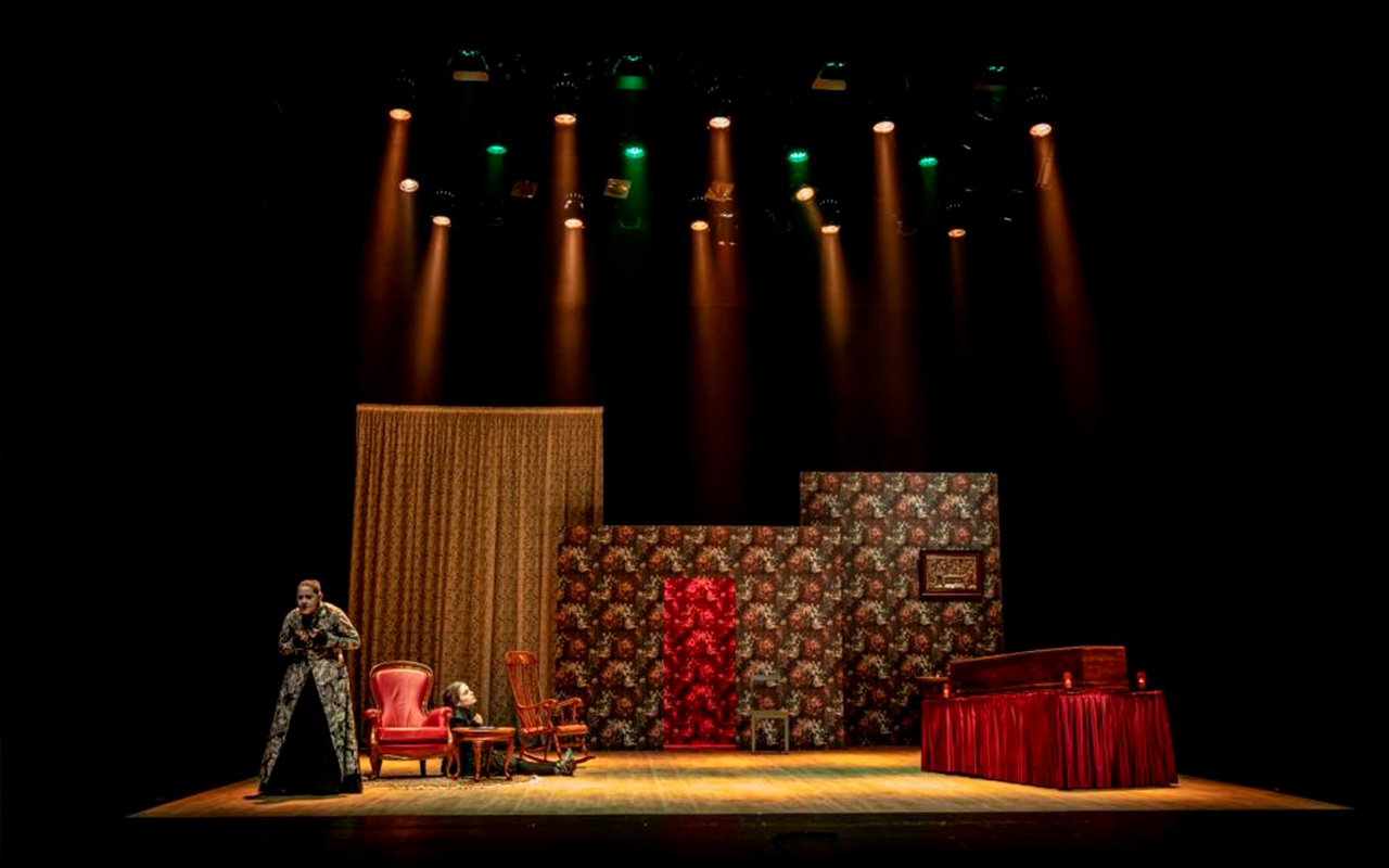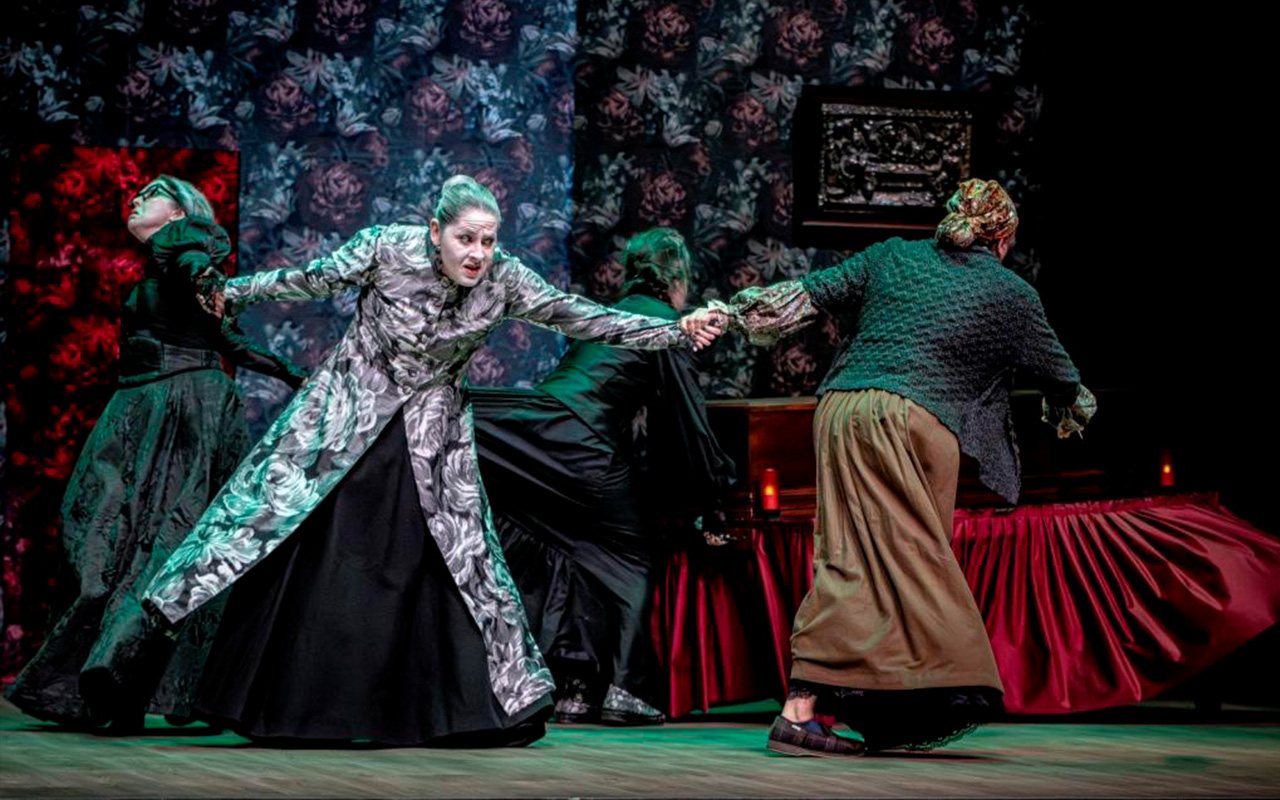 Un adecuado uso del espacio escénico (Carlos Lorenzo) y una señera dirección de Sandro Cordero, hacen posible que esta sucesión de cuadros humanos -con las descarnadas pinceladas de Gutiérrez Solana- componga un desarrollo dinámico del despiadado texto (y tremendamente divertido). Mujeres de negro, mujeres enlutadas, en notable homenaje a la literatura gótica. Tan enlutadas como sus almas que se van desgarrando misturando la nerviosa carcajada con el hachazo de sus actos reprochables y reprobables. La ranciedad y el abolengo con aroma a naftalina impregnan la Casa Grande en medio de una correcta iluminación, plena de haces, de matiz expresionista (Félix Garma).