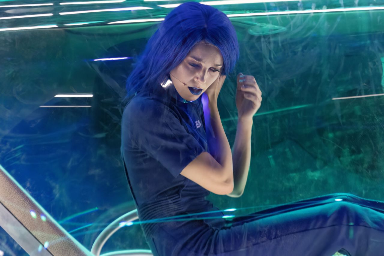 El viaje de Azul —¿humana o creación artificial?— articula un relato que combina tensión psicológica, humor adulto e interacción con el público. Su lucha por no perder su identidad contrasta con un entorno donde la IA domina todas las reglas.