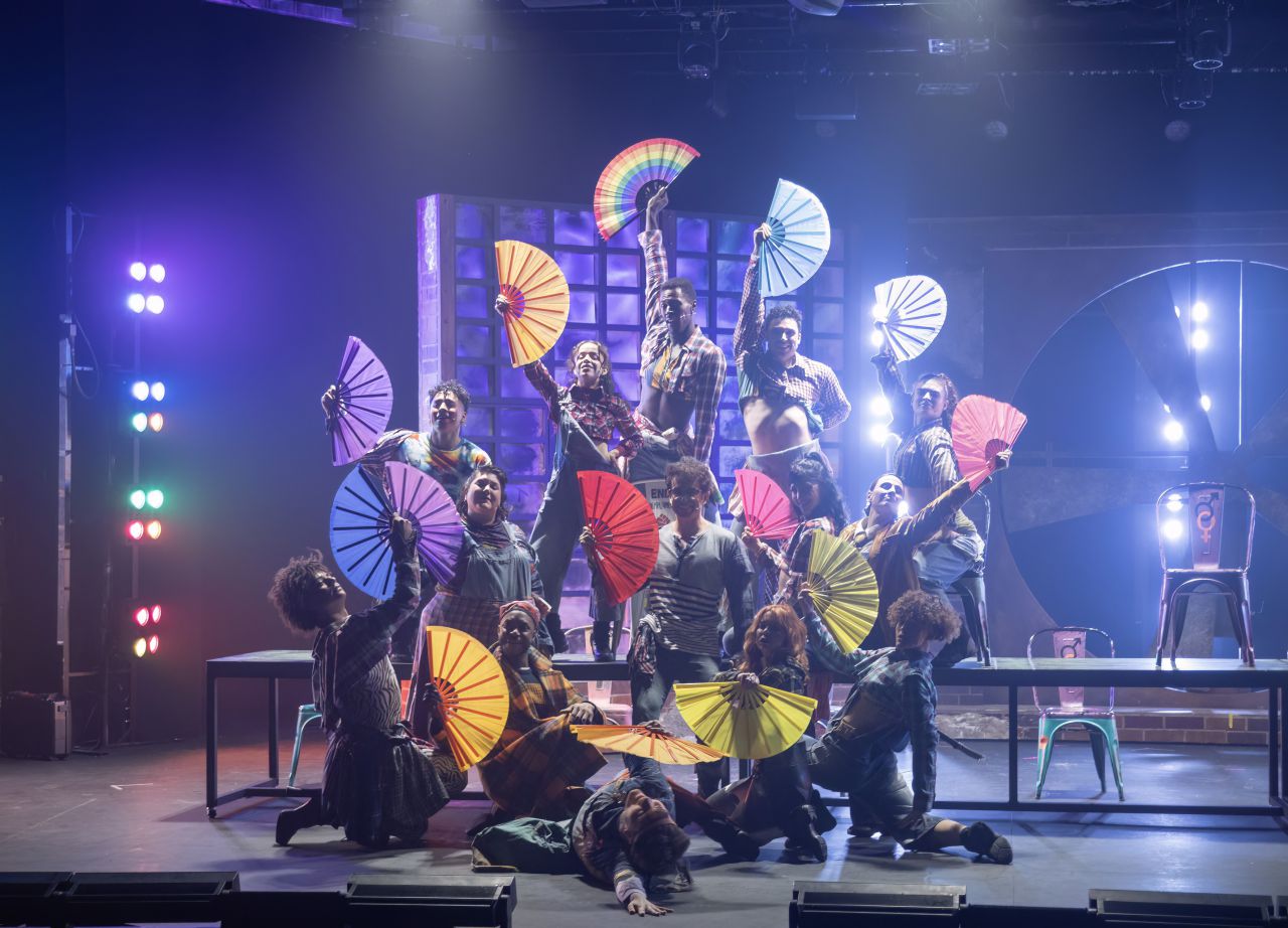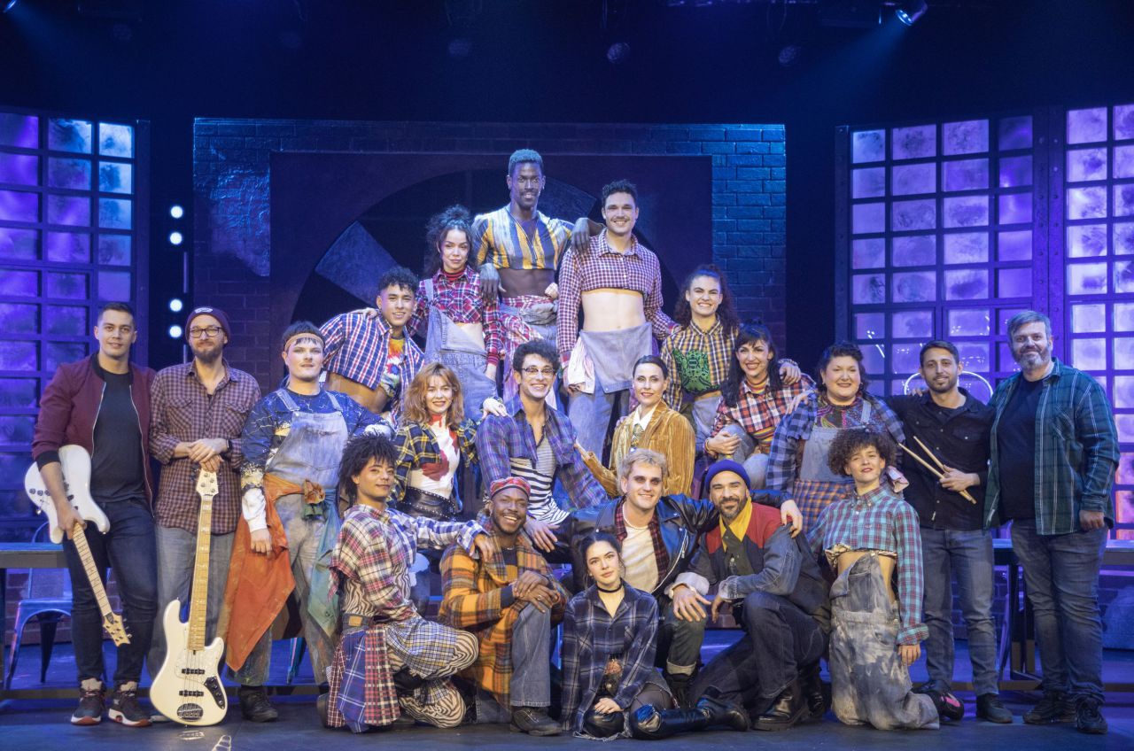 Toda la compañía con músicos incluidos. Artistas que se brindan en cuerpo y alma en una representación muy exigente tanto musical como actoralmente. Con momentos coreográficos estupendos dirigidos por Analía González. (Foto, Antonio Castro).