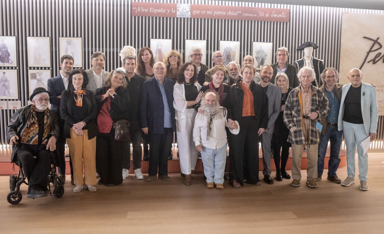 Gran parte de la Compañía del 97, presente en la emotiva presentación de la exposición. Último, a la derecha, Juan Carlos Pérez de la Fuente, máximo responsable de la puesta en escena y de este homenaje a Francisco Nieva. Foto: © Antonio Castro