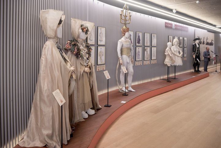 Detalle de la exposición con algunos de los trajes exhibidos, diseñados por Pedro Moreno. Foto © Antonio Castro.